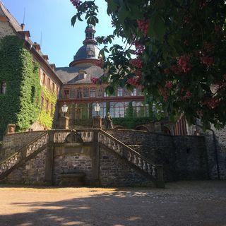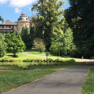 Ursprünglich gab es im Schlossparkgelände sieben Teiche, die der Verteidigung in diesem mauerlosen Bereich dienten, hiervon sind heute noch der Schwanen- und der Inselteich übrig. Die frühere Untermühle im westlichen Bereich des Parks, einst betrieben vom Bach „Laubach“, nachdem 1832 die Mühle stillgelegt wurde diente diese seither mannigfaltigen anderen Zwecken, darunter Anfang des 20. Jahrhunderts als Casino der "höheren Gesellschaft", später als Jugendherberge und auch als Wohnhaus gräflicher Familienangehöriger.