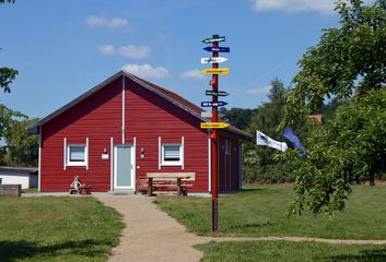 Im modernen Sanitär- und Servicehaus (Duschen, WC, Waschplätze) finden Sie außerdem eine kleine, aber komplett ausgestattete Küche, in der Sie mitgebrachte Lebensmittel zubereiten können und einen überdachten Abstellplatz für Fahrräder und E-Bikes, sowie eine E-Bike Ladestation. Weiterhin finden Sie auf der Anlage einen Gemeinschaftswagen mit bis zu 20 Sitzplätzen und vier Tischen zum Aufenthalt an kühleren Tagen und einen Bouleplatz zu Ihrer Verfügung.