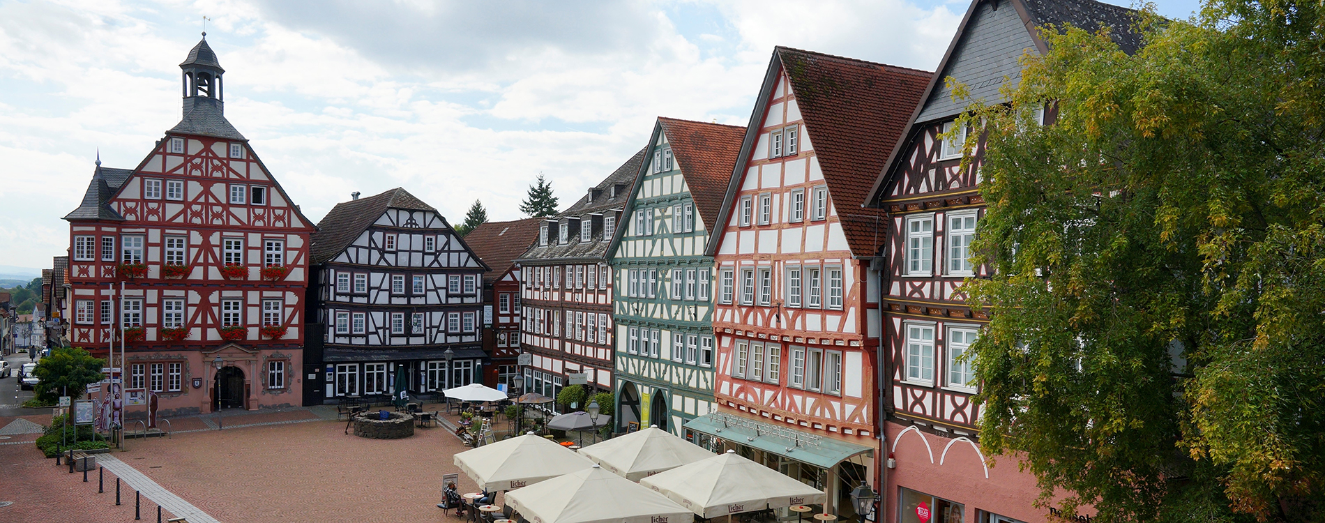9 Gästezimmer mit modernem Komfort in einem alten Fachwerkhaus mitten in der historischen Altstadt von Grünberg am Marktplatz gelegen.