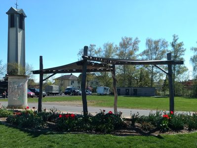 Am Ortsrand gelegen erreicht man Metzgerei, Restaurant und Imbiss in der Dorfmitte fußläufig in wenigen Minuten.