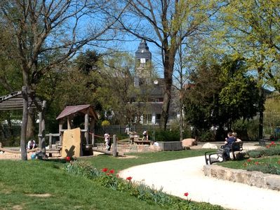 Der Wohnmobilstellplatz mit seinen 6 Stellplätzen liegt idylisch am angrenzenden Mehrgenerationen-Bürgerpark und dem Flüsschen Wetter.